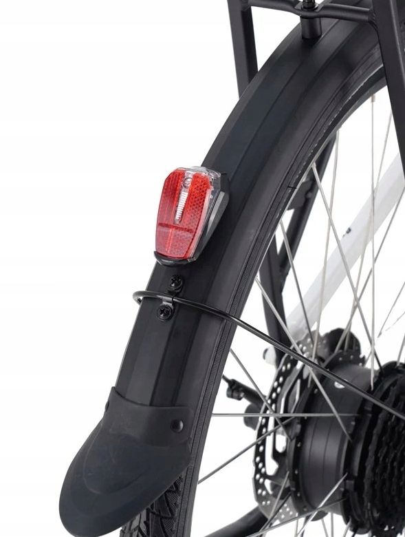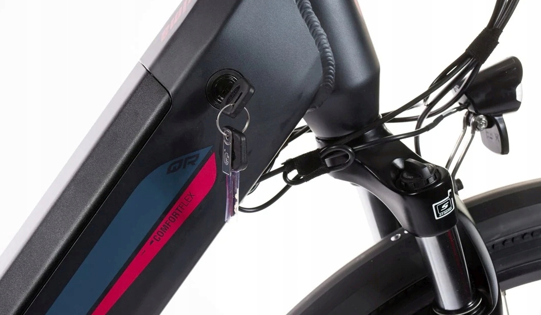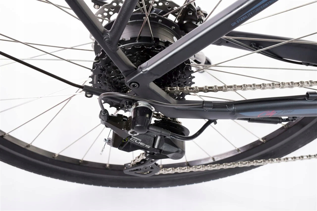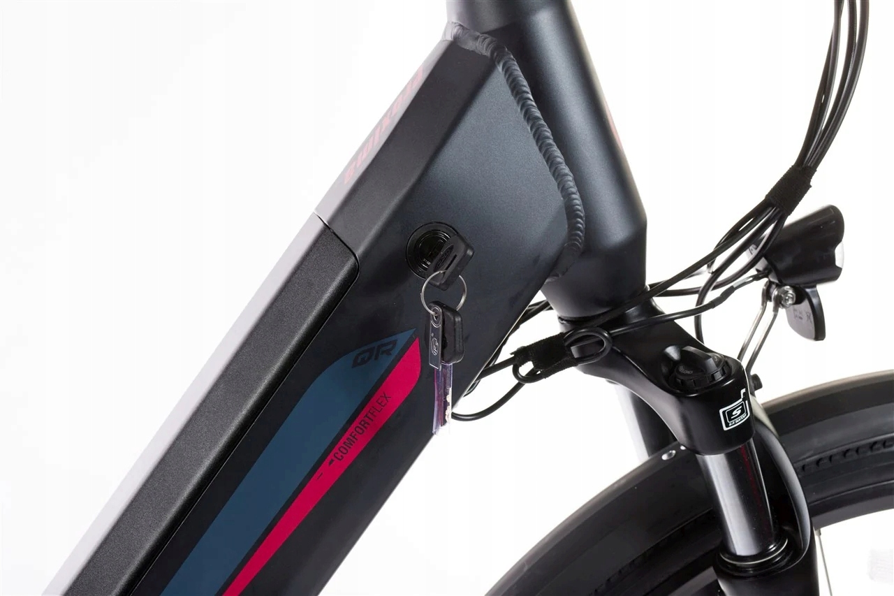 Mocny silnik elektryczny w piaście koła ma moment obrotowy 40Nm, w połączeniu z baterią o mocy 17,5Ah (630Wh) daje zasięg do 120 km.