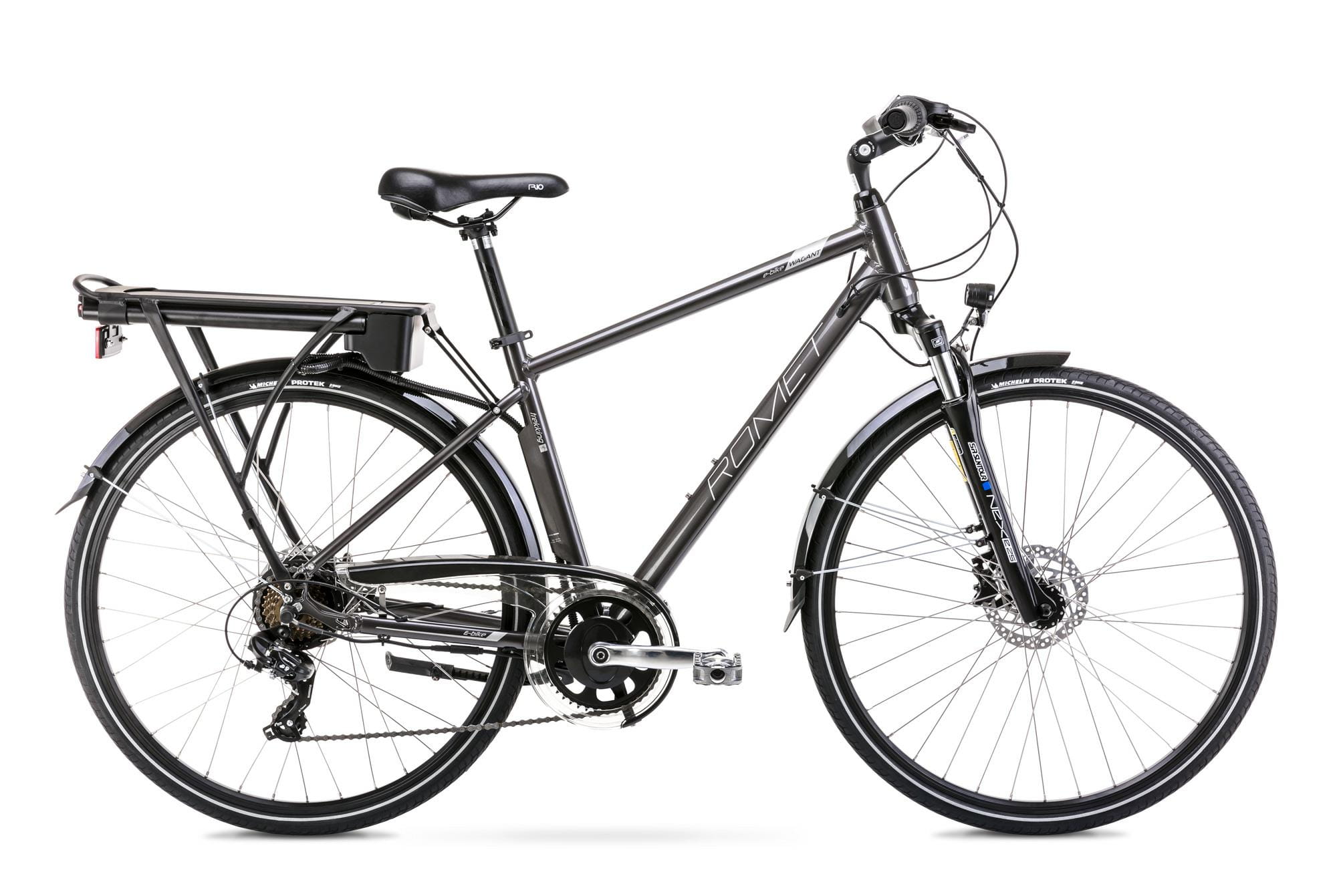 Typowy rower Trekingowy dla osób dorosłych i młodzieży poruszających się głównie po asfalcie i utwardzonych drogach. Wyposażony w osprzęt Shimano, przedni amortyzator Sontour, nowoczesne oświetlenie LED, pełną osłonę łańcucha. Widelec amortyzowany poprawi komfort podczas leśnych wycieczek rowerowych.Hamulce tarczowe hydrauliczne to niezawodność w każdych warunkach.